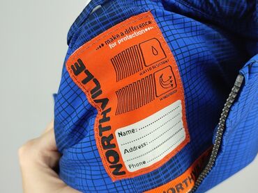Kurtka dziecięca z kapturem, rozmiar 158. - Wzór: granatowo-biało-brązowa kratka z drobnymi motywami. - Zapięcie: zamek błyskawiczny z przodu. - Kaptur ze ściągaczem. - Dwie przednie kieszenie na z...