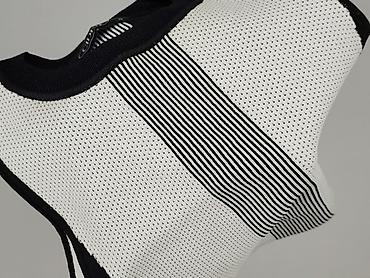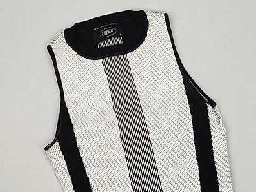 Bezrękawnik/top damski w prążek - Fason: bez rękawów, dopasowany, z krótką stójką - Wzór: poziome prążki/szaro-białe paski - Materiał: elastyczna, prążkowana dzianina (miękka, sprężysta, dobrze do...