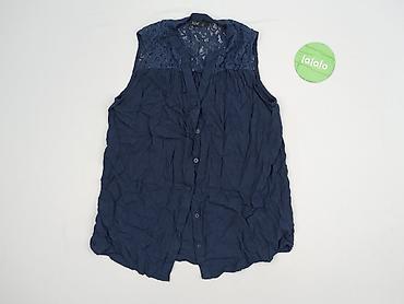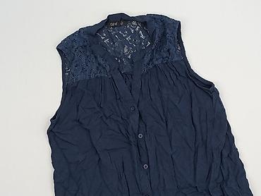 Bluzka damska CLEVE, rozmiar L. - Kolor: granatowy - Krój: bez rękawów - Zapięcie: na guziki z przodu na całej długości - Dekolt: okrągły/stójka - Wstawki: koronkowe karczki z przodu i z tyłu - Ma...