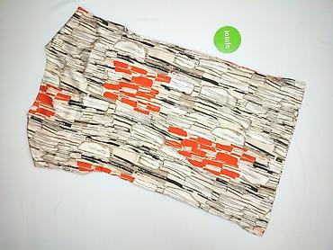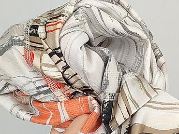 - Wzór: abstrakcyjny print w odcieniach beżu, ecru, czerni i intensywnej czerwieni/pomarańczu