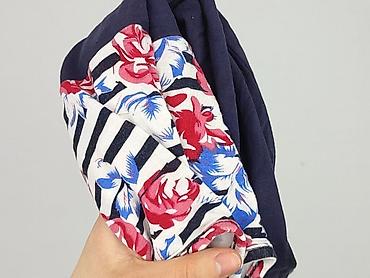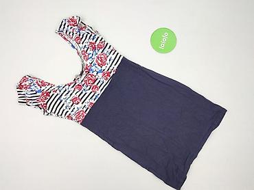 - Wzór i kolor: góra w poziome granatowo-białe pasy z kwiatowym printem (róże w odcieniach czerwieni i niebieskiego), dół gładki, granatowy; odcięcie w talii po skosie modelujące sylwetkę
