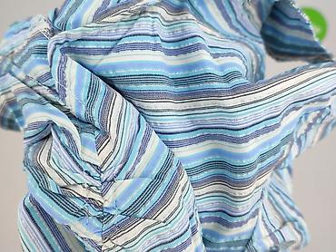 - Wzór: paski w odcieniach błękitu, niebieskiego, bieli i szarości