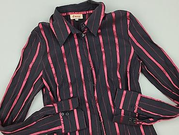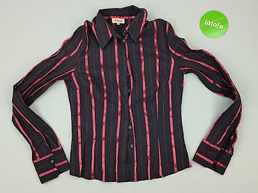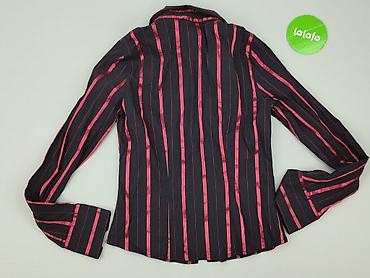 Koszula damska w paski, rozmiar M - Klasyczny krój z kołnierzykiem, długi rękaw - Zapięcie na guziki z przodu oraz przy mankietach - Wzór: wąskie pionowe paski czarno-białe - Zaokrąglony dół - Mat...