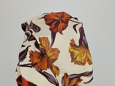- Wzór: duży, kwiatowy print w odcieniach rudości, żółci, zieleni i fioletu na jasnym tle