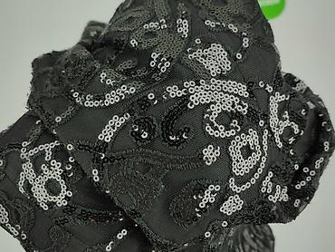 Sukienka damska wieczorowa, czarna, z połyskującą siateczką - Fason: rozkloszowana, z marszczeniem w talii - Dekolt: w kształcie litery V - Rękawy: długie, z przezroczystej siateczki - Materiał: w...
