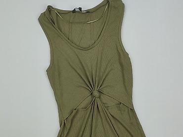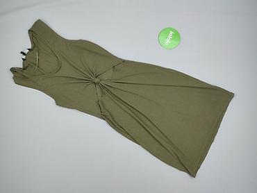 Sukienka damska, khaki/oliwkowa, z miękkiej dzianiny. - Krój: luźny, lekko rozszerzany ku dołowi, z wiązaniem w pasie z tyłu do regulacji sylwetki. - Dekolt: w kształcie litery V. - Rękawy: k...