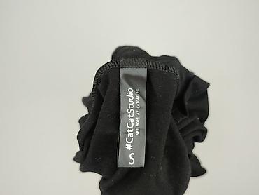 Sukienka damska, czarna, rozmiar S. - Krój: prosta, lekko rozszerzana ku dołowi, długość przed kolano. - Rękaw: krótki. - Kołnierz: szeroki, asymetryczny z ozdobną patką zapinaną na duży guzik. - ...