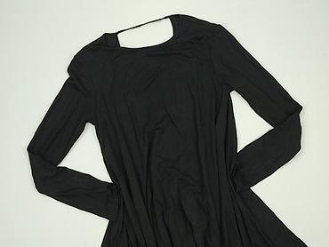 Czarna sukienka damska z długim rękawem - Krój: dopasowany, ołówkowy dół z kopertową zakładką z przodu - Dekolt: okrągły - Długość: przed kolano (mini/krótka) - Rękawy: długie - Talia: delikatnie ...Stan: