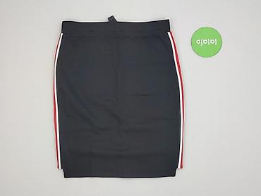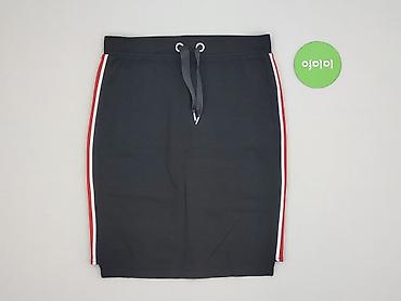 Damska spódnica HOUSE, rozmiar M. - Kolor: czarny - Krój: ołówkowy, długość przed kolano - Styl sportowy: po bokach podwójne białe lampasy - Talia: elastyczna - Detal: metalowe kółko przy pasie z l...