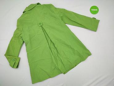Zielony damski płaszcz/marynarka o kroju dwurzędowym - Rozmiar: M (na metce) - Materiał: 60% bawełna, 40% poliester - Kolor: intensywna zieleń, jednolity - Tkanina o wyraźnej, żakardowej fakturze ...