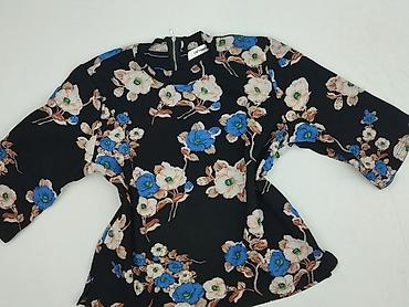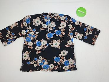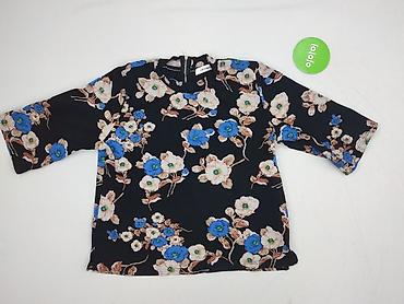 Bluzka damska z krótkim rękawem, w kwiatowy wzór - Rozmiar: S (EU 36, US 4) – na metce - Materiał: 100% poliester - Kolor: czarne tło z pastelowym, różowo-zielonym motywem kwiatowym - Krój: lekko ...