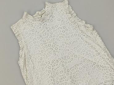 Biała damska bluzka bez rękawów z koronkową wstawką - Fason: luźny, prosty krój z delikatnym marszczeniem z przodu - Dekolt: okrągły - Tył: zapięcie na mały guziczek przy karku - Ozdoby: szeroki p...