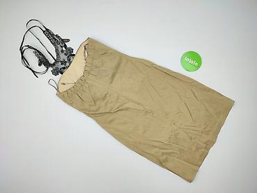 Sukienka damska, rozmiar L. - Fason: ołówkowy, długość midi (przed kolano), z krótkim rękawem - Kolorystyka: beżowo‑czarna, z wyszczuplającymi panelami po bokach - Przód: efektowna, duża aplikacja...