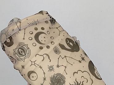 - Wzór: motywy astrologiczno‑mistyczne (słońca, księżyce, konstelacje, oko, węże, klepsydry, chmury) w oliwkowo‑grafitowej tonacji