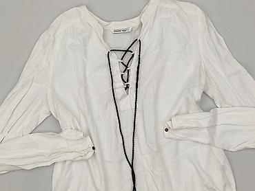 Bluzka damska CROPP, rozmiar XL - Kolor: śmietankowa biel - Krój: luźny, lekko wydłużony tył - Rękaw: długi, zakończony mankietem na guzik - Dekolt: wiązany sznureczkiem, z drobną falbanką przy st...