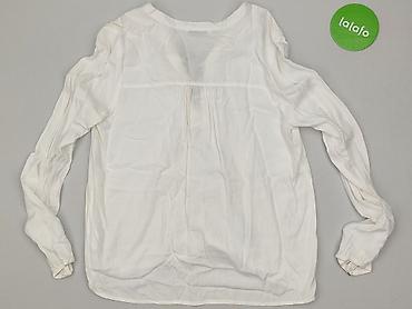 Bluzka damska Cropp - Kolor: biały - Rozmiar z metki: S - Skład: 100% wiskoza - Fason: lekko luźny, z dłuższym tyłem - Dekolt w kształcie litery V z wiązaniem i falbanką - Długie rękawy zakończone...