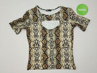 Bluzka CROPP, rozmiar S - Krój: luźny, oversize z krótkim rękawem - Dekolt: okrągły - Dół: asymetryczny, wiązanie z przodu (pasek/wiązka schodząca na środek) - Wzór: intensywny nadruk w motyw skór...