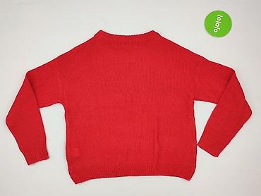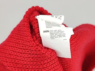 Sweter świąteczny damski CROPP, rozmiar M - Kolor: intensywna czerwień - Motyw: renifer z czerwonym noskiem, zielony szalik w śnieżynki, białe śnieżynki oraz trójwymiarowe pomponiki imitujące śnie...