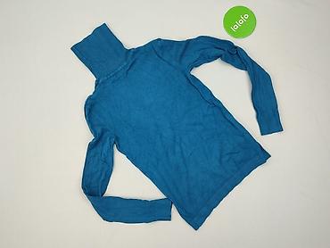 Sweter damski z golfem, miękki i puszysty, kolor chabrowo-niebieski. - Fason: dopasowany, z długim rękawem - Golf: wysoki, elastyczny, można wywijać - Dzianina: bardzo miękka, „futerkowa”/fluffy, ...