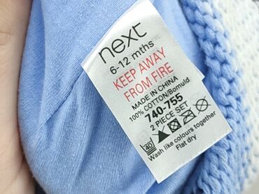 Wygodna i ciepła czapka dla niemowlęcia, zapewniająca osłonę uszu i komfort noszenia. Marka: Next. Made in China. Kod z metki: 740-755. Zestaw 2-częściowy (informacja z metki). KEEP AWAY FROM FIRE.