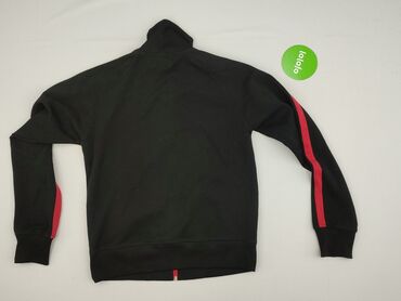 Czarna sportowa kurtka marki SZACNOWINICA, wykonana z połączenia bawełny i poliestru. Kurtka zapinana jest na zamek błyskawiczny, który na całej długości ozdobiony jest napisem „SPORTS WEAR”. Posia...