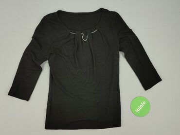 Czarna damska bluzka z dekoltem w łódkę - Fason: dopasowany, elastyczny - Rękaw: 3/4 - Dekolt: szeroki, zaokrąglony (łódkowy) – zarówno z przodu, jak i delikatnie z tyłu - Długość: do bioder - Mat...