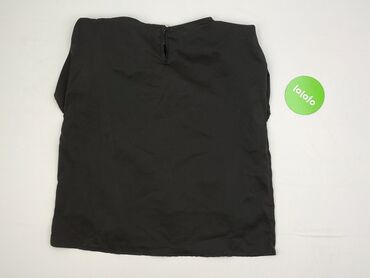 Czarna bluzka VANILL, rozmiar z metki: 1. - Krój: luźny, z krótkim rękawem - Dekolt: w kształcie litery V z ozdobnym krzyżującym się paskiem z tyłu - Dół: elastyczny ściągacz w biało‑czarne paski ...