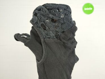 Czarna bluzka damska na ramiączkach z wyciętymi ramionami (cold shoulder) i bogato zdobioną, koronkową wstawką na obu rękawach. - Cienkie, regulowane ramiączka. - Delikatny dekolt w kształcie lit...