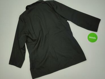 Damska marynarka czarna, rozmiar 38 - Fason: taliowana, jednorzędowa na 2 guziki - Kołnierz: klasyczne, szerokie klapy - Rękawy: długie - Kieszenie: dwie z przodu z patkami (dekoracyjne) - Tył: mo...