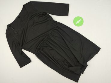 Czarna sukienka midi z dzianiny - Fason: dopasowany, kopertowy przód z zakładkami i marszczeniem po lewej stronie w talii - Rękaw: 3/4 - Długość: do kolan/za kolano (midi) - Dekolt: kopertowy, lek...