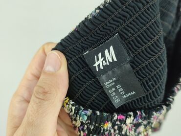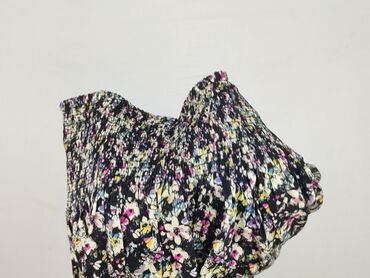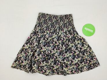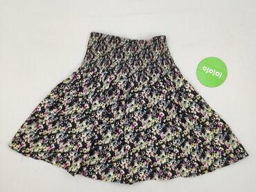 Spódnica H&M - Rozmiar: S (EUR S, CN 165/72A – na metce) - Krój: mini, lekko rozszerzana - Talia: elastyczna, marszczona - Wzór: paisley/ornamenty, wielokolorowy miks odcieni różu, fioletu, pomara...Czarna spódnica mini marki H&M z kwiecistym wzorem. Model charakteryzuje się elastycznym, marszczonym pasem, który zapewnia wygodne dopasowanie. Kwiecisty wzór w odcieniach bieli, fioletu i żółci dodaje spódnicy lekkości i dziewczęcego uroku. Idealna do noszenia na co dzień w ciepłe dni.