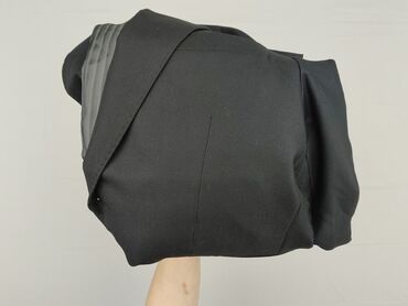 Męska marynarka garniturowa, czarna - Klasyczny krój z klapami w szpic - Zapięcie na 2 guziki z przodu - Kieszenie: piersiowa wpuszczana + dwie dolne z patkami - Długi rękaw, mankiety z guzikami -...
