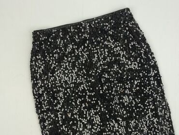 Czarna spódnica mini z cekinami - Fason ołówkowy z delikatnym marszczeniem przy kieszeniach - Ozdobne wstawki z czarnych cekinów: w pasie, wzdłuż linii kieszeni oraz przy dole - Dwie praktyczne ki...