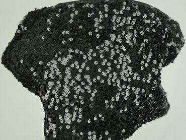 Czarna spódnica mini z cekinami - Krój: ołówkowa/mini, elastyczna, bez zamka - Materiał (z metki): 36% akryl, 22% winyl, 20% bawełna, 12% poliester, 10% nylon - Wykończenie: gęsto naszyte połyskuj...