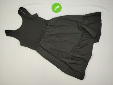 Czarna, prążkowana sukienka midi na ramiączkach - Fason: dopasowana, długość midi, lekko rozszerzana na dole z delikatnie falowanym brzegiem - Dekolt: prosta linia z marszczeniem; cienkie, wiązane...