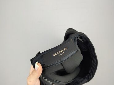 Czarna spódnica Reserved, rozmiar 34. - Fason: mini, lekko trapezowy, z przodem modelowanym zakładkami - Wysoki stan z szlufkami - Wbudowany pasek z materiału zapinany na metalową podwójną obręcz ...