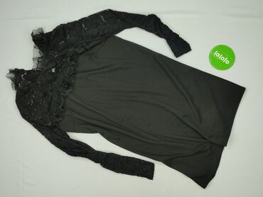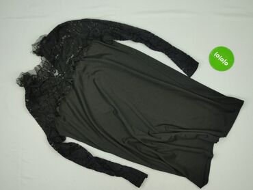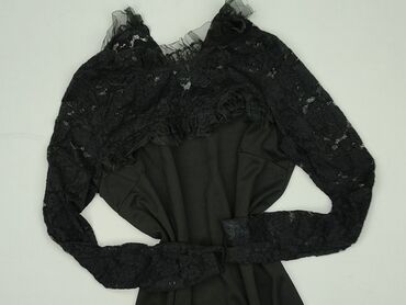 Sukienka damska, czarna, z koronkowymi rękawami - Fason: lekko rozkloszowany, długość mini/tuż nad kolano - Dekolt: w kształcie litery V - Rękawy: długie, z czarnej, ażurowej koronki - Tył: ozdobn...