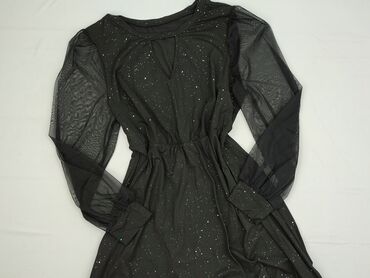 Czarna sukienka z cekinami, rozmiar XL. - Fason: dopasowany, długość mini/przed kolano - Rękawy: długie, zakończone lekką gumką - Dekolt: okrągły - Materiał: warstwa A – 100% poliester (podszewka)...