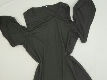 Czarna sukienka/tunika z krótkim rękawem - Klasyczny, gładki czarny kolor - Prosty, lekko dopasowany krój o długości mini/za biodra – można nosić jako sukienkę lub dłuższą bluzkę - Okrągły dekolt ...