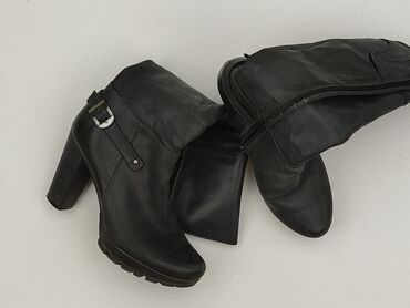 Czarne damskie kozaczki na obcasie kitten heel - Klasyczny, smukły fason z ostrym noskiem - Wysokość obcasa: ok. 5–6 cm (szpilka/kitten heel) - Cholewka do połowy łydki, miękko układająca się - Gó...