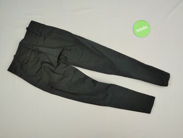 Czarne spodnie damskie z wysokim stanem - Fason: proste nogawki, lekko zwężane ku dołowi - Stan: wysoki, szeroki pas - Zapięcie: 2 guziki z przodu (brak widocznego zamka – ukryte zapięcie na pasku...