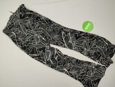 Damskie spodnie z miękkiego, lejącego materiału - Kolor: czarny w biały, roślinny print (gałązki i kwiaty) - Krój: luźne nogawki, długość 7/8 – 3/4 (w zależności od wzrostu), lekko zwężane przy kos...Stan: