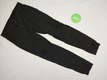 Czarne spodnie dresowe/joggers - Fason: zwężane nogawki typu jogger - Talia: elastyczna guma + sznurek do regulacji, metalowe końcówki - Nogawki: ściągacze przy kostkach - Kieszenie: dwie boczne -...