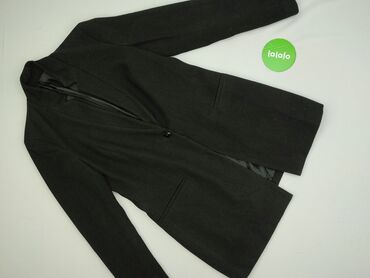 Damska marynarka w kolorze czarnym (rozmiar z metki: 36). - Krój: taliowany, jednorzędowy, z dwoma guzikami - Kołnierz: klasyczne, szerokie klapy - Rękawy: długie - Kieszenie: dwie przednie z patk...