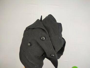 Czarny płaszcz damski, krótki, dwurzędowy. - Klasyczny krój z rozkloszowanym dołem i podkreśloną talią - Duży kołnierz rewersowy - Zapięcie na cztery duże, połyskujące guziki z przodu - Pikowana p...Czarny płaszcz damski marki Topshop, dwurzędowy, z szerokim kołnierzem i klapami. Płaszcz ma długie rękawy z guzikami na mankietach oraz pagony na ramionach. Wykonany z mieszanki materiałów, w tym wełny, zapewnia ciepło i komfort. Idealny do codziennych stylizacji, zarówno eleganckich, jak i casualowych. Płaszcz w bardzo dobrym stanie.