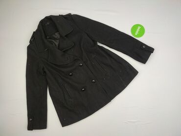 Płaszcz damski H&M - Kolor: czarny - Fason: trencz z kołnierzem z klapami, dwurzędowe zapięcie na guziki - Pasek w talii z klamrą + szlufki, dodatkowe patki/przeszycia podkreślające linię talii - ...