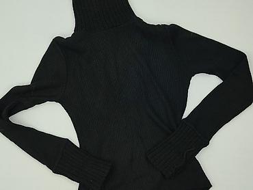 Czarny golf damski z długim rękawem - Klasyczny, dopasowany krój - Wysoki, elastyczny kołnierz-golf z prążkowanym wykończeniem - Mankiety i dół wykończone ściągaczem - Na mankietach dekoracyjne gu...Rozmiar: