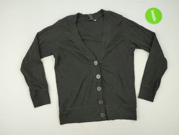 Czarny kardigan damski z długim rękawem, zapinany na guziki, z dekoltem w kształcie litery V. Wykonany jest z prążkowanego materiału, co nadaje mu klasyczny wygląd. Idealnie sprawdzi się jako uzupe...