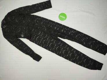 Czarny kombinezon damski SHEIN - Rozmiar: L (EU 40/42, US 8/10 – na metce) - Materiał: 95% poliester, 5% elastan - Fason: długie, proste nogawki; dopasowana góra - Rękawy: długie, z siateczki w gr...