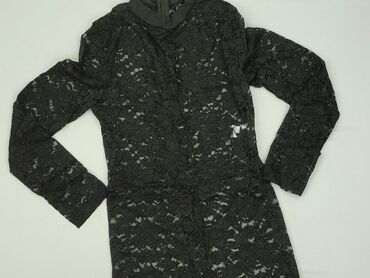 Czarny kombinezon damski marki Shein, rozmiar L (EU 40/42, US 8/10), wykonany z mieszanki poliestru (95%) i spandexu (5%). Kombinezon ma długie rękawy z koronkowymi wstawkami na ramionach i plisowa...
